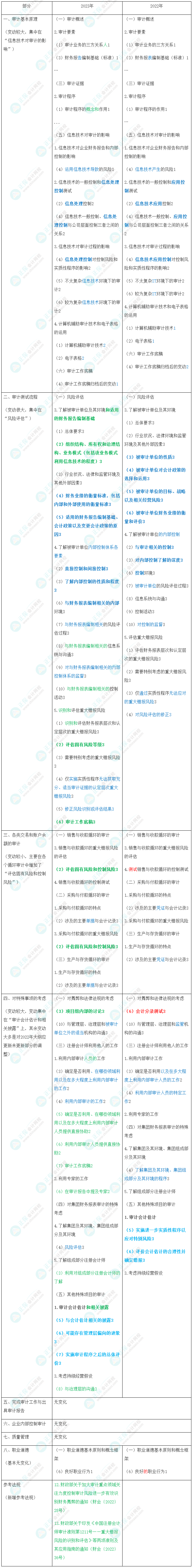 速看!2023年注会综合阶段大纲变化对比分析