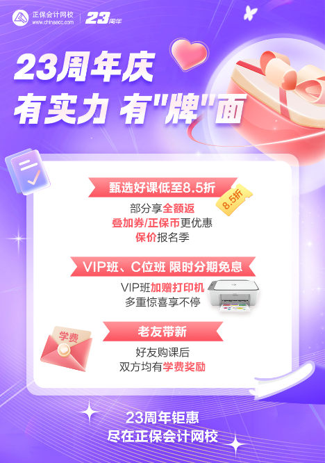 现正值正保二十三周年庆!爆款好课低至8.5折!还有机会蹲直播、抽免单、赢好礼!更有一大波福利惊喜来袭!