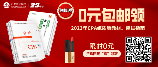 cpa考生们注意啦!正小保给大家送福利来啦!新教材已经发布,网校为感恩答谢各位考生的支持与信任特推出“限时0元领CPA好书”福利活动!免费包邮送:2023CPA官方教材、应试指南纸质版&电子版、价值390元的圣罗兰细管口红! 数量有限,先到先得!