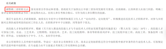 去年湖北省人社厅发布2022年职称评审工作启动通知,提到湘鄂赣三省职称互认。