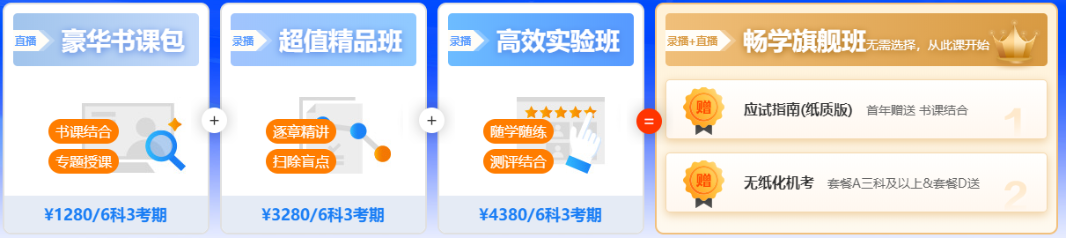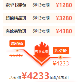 套餐D:6科3考期优惠后仅需4233元,还限量赠礼盒!先到先得!