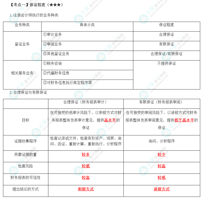 高频考点 | 保证程度、审计要素、认定与具体审计目标、审计的基本要求、审计风险 |