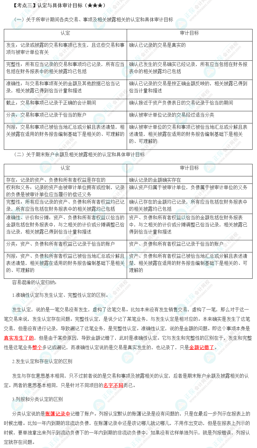高频考点 | 保证程度、审计要素、认定与具体审计目标、审计的基本要求、审计风险 |