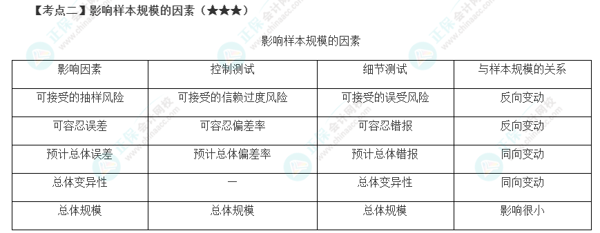 高频考点 | 审计抽样的相关概念、影响样本规模的因素、审计抽样在控制测试中的应用、审计抽样在细节测试中的应用 |