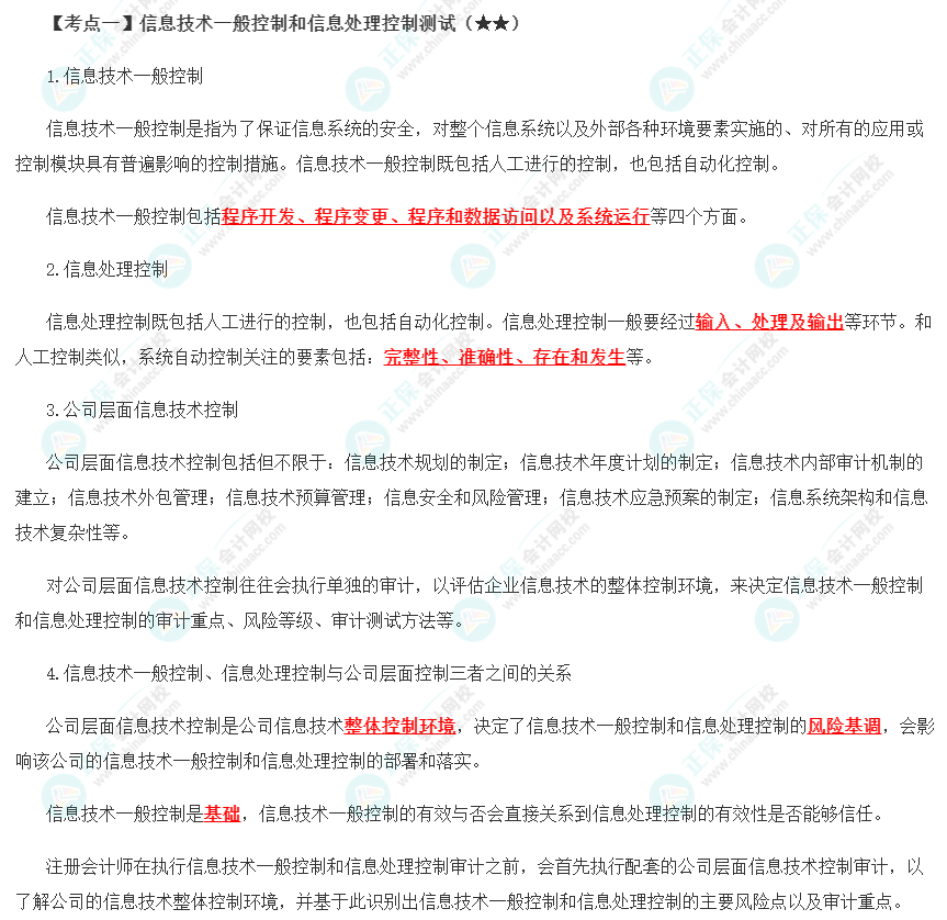 高频考点 | 信息技术一般控制和信息处理控制测试、信息技术对审计过程的影响 |