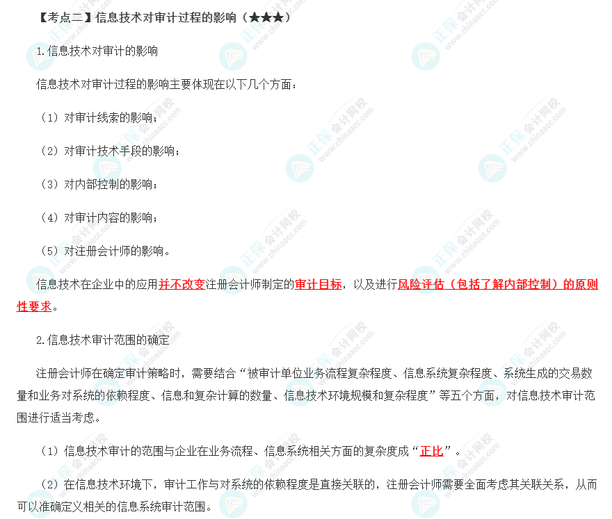 2023年注会《审计》第五章高频考点2:信息技术对审计过程的影响