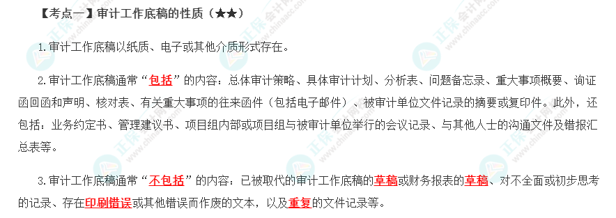 高频考点 | 审计工作底稿的性质、审计工作底稿的归档、审计工作底稿的变动 |