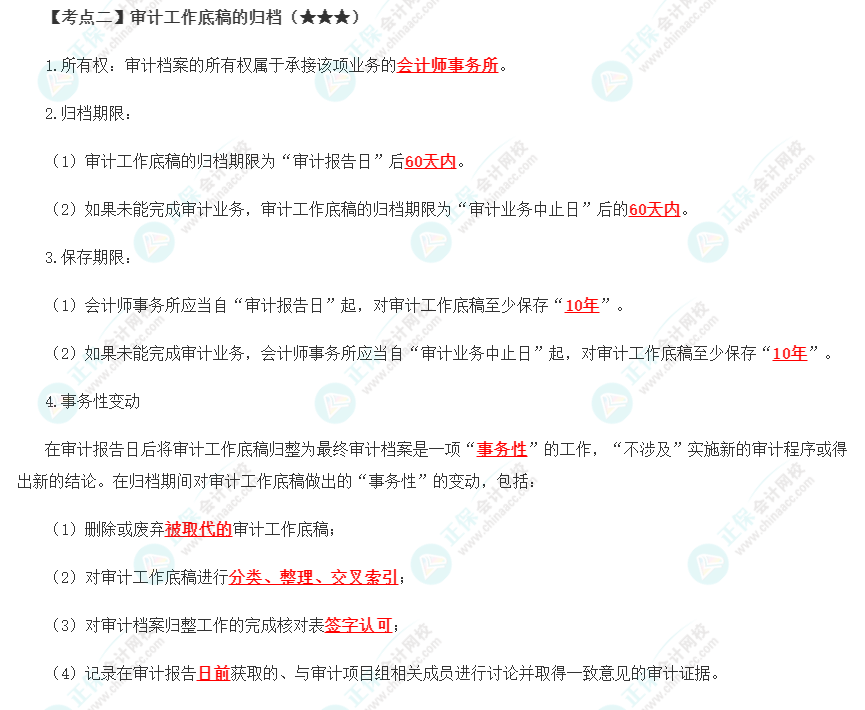 高频考点 | 审计工作底稿的性质、审计工作底稿的归档、审计工作底稿的变动 |