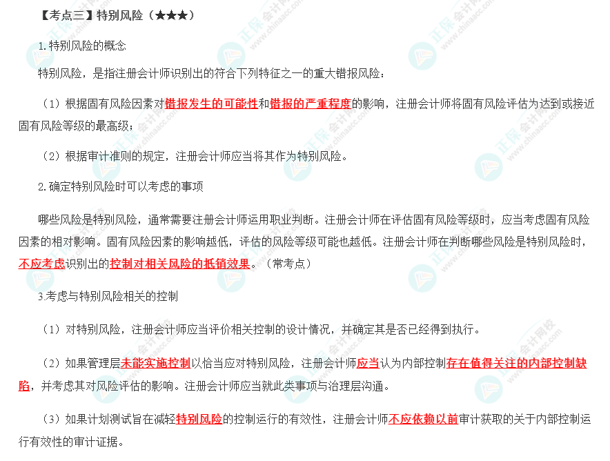 高频考点 | 了解内部控制、识别和评估重大错报风险、特别风险 |