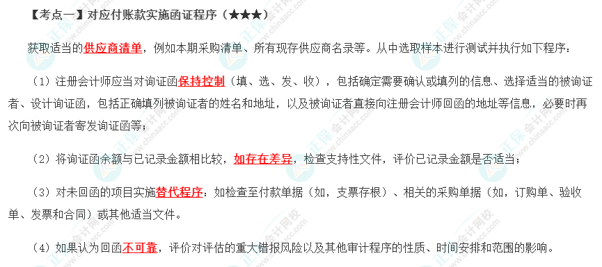 高频考点 | 对应付账款实施函证程序、应付账款的截止、完整性审查 |