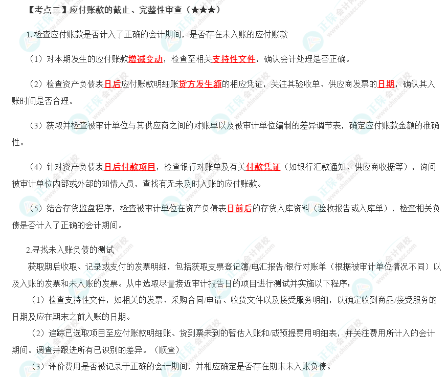 高频考点 | 对应付账款实施函证程序、应付账款的截止、完整性审查 |