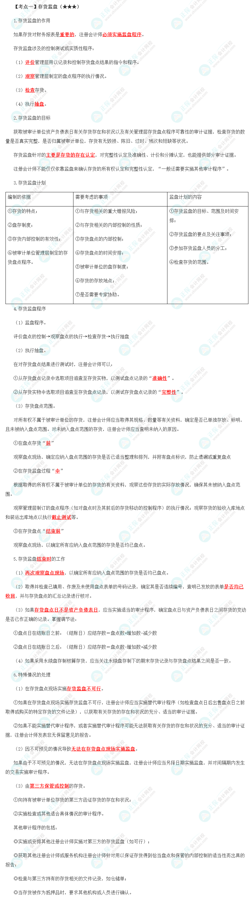 高频考点 | 存货监盘、存货计价测试 |