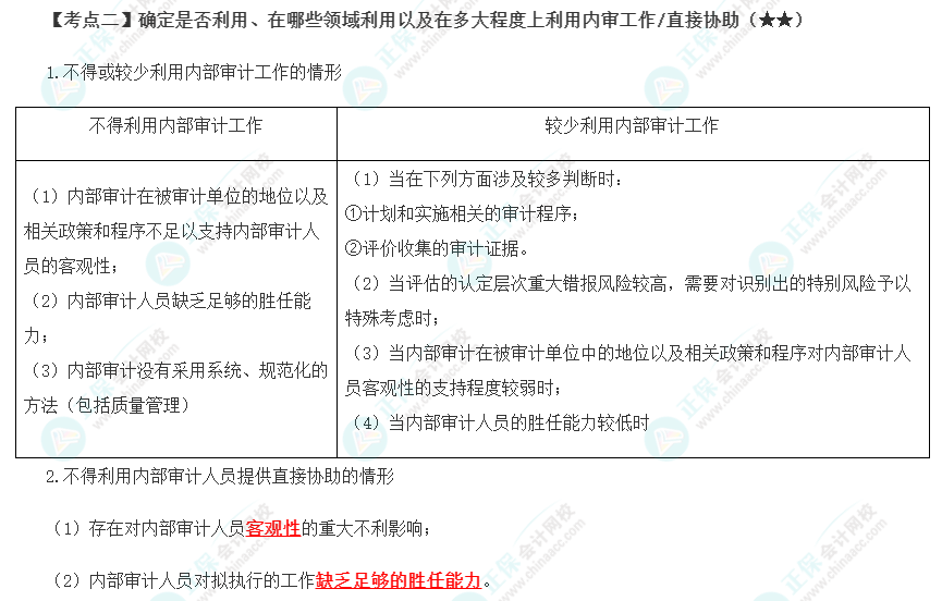 2023年注会《审计》第十五章高频考点2:内审工作的利用