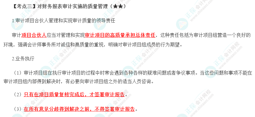 2023注会《审计》第二十一章高频考点3:对财务报表审计实施的质量管理