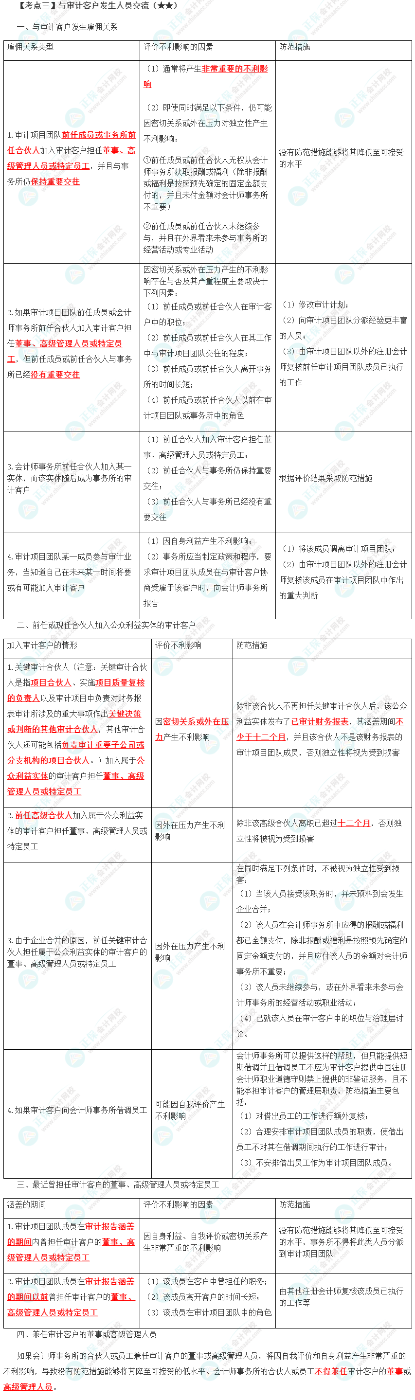 2023注会《审计》第二十三章高频考点3:与审计客户发生人员交流