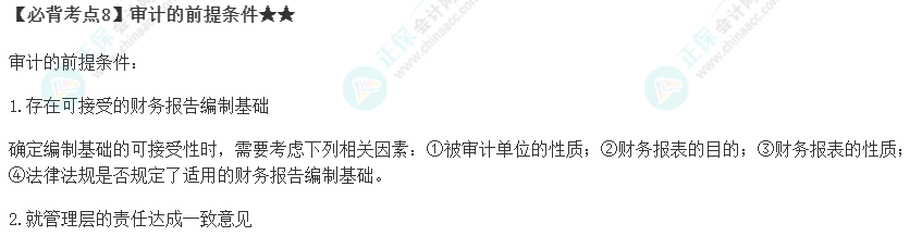2023注册会计师《审计》必背考点8:审计的前提条件