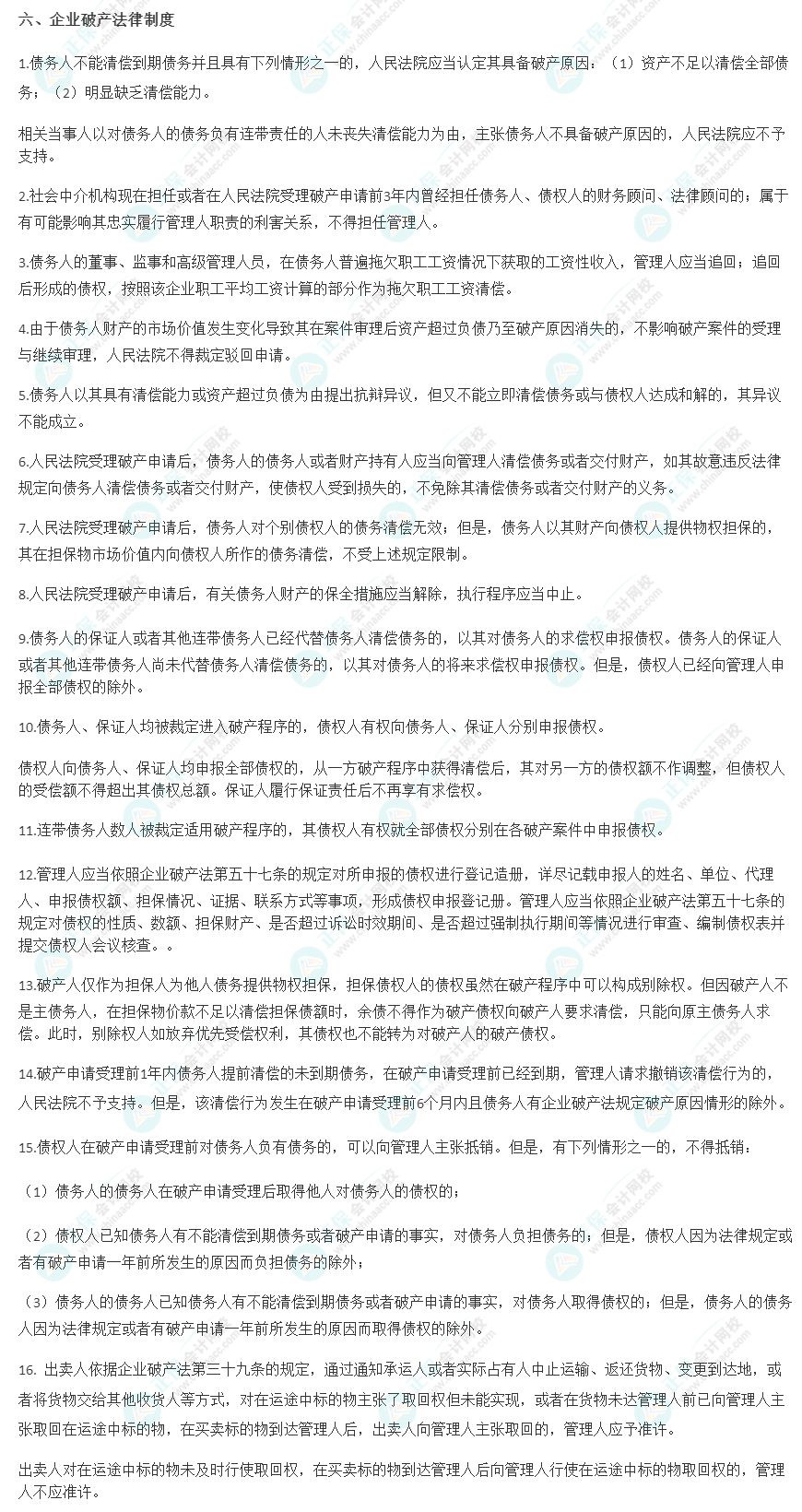 2023年注会《经济法》必背法条:企业破产法律制度