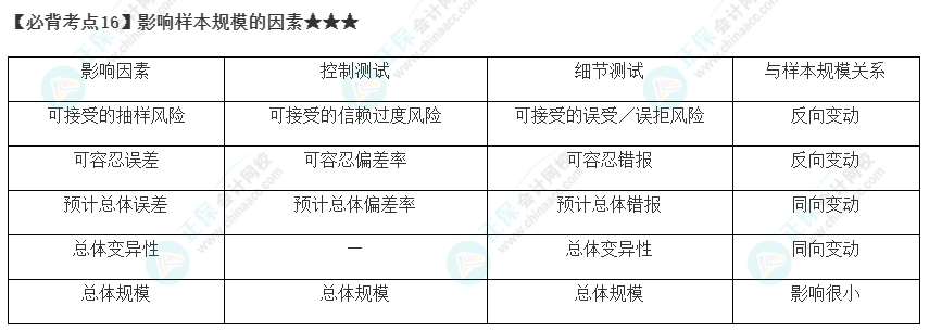 2023注册会计师《审计》必背考点16:影响样本规模的因素