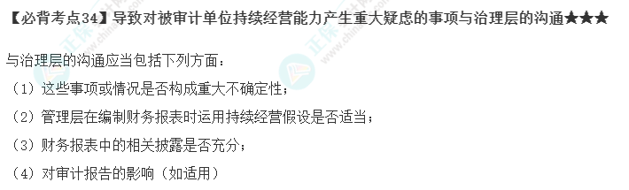 2023注会《审计》必背考点34:重大疑虑的事项与治理层的沟通