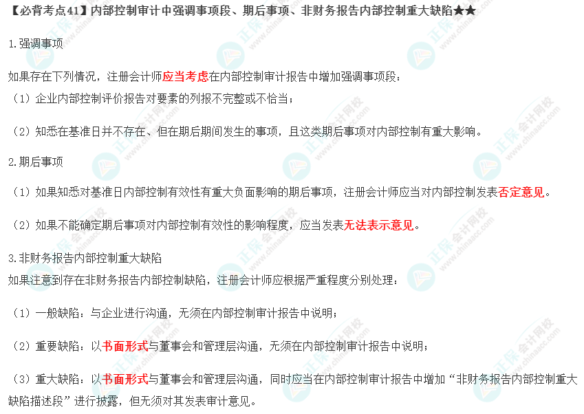 2023注会《审计》必背考点41:强调事项段/期后事项/重大缺陷