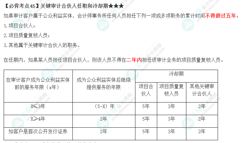 2023注会《审计》必背考点45:关键审计合伙人任职和冷却期