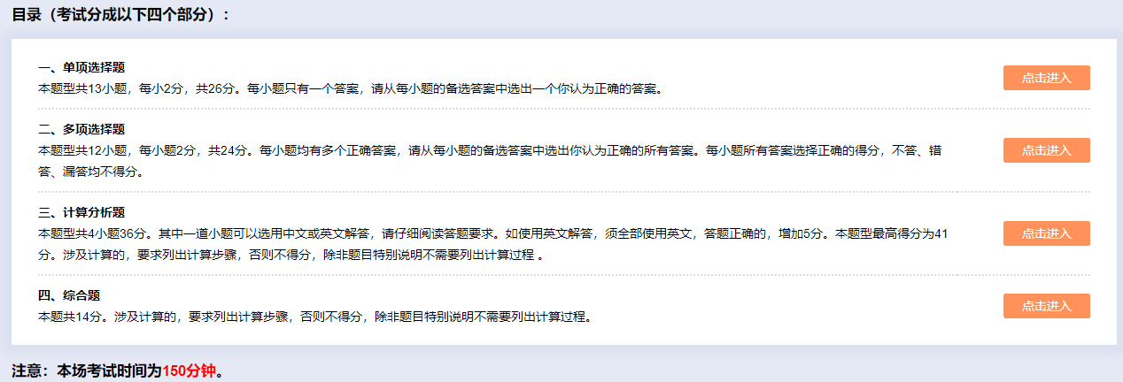 在考生进入正式考试页面开始答题前,系统会有一些提示,会对题型、分值占比、答题要求做详细说明。