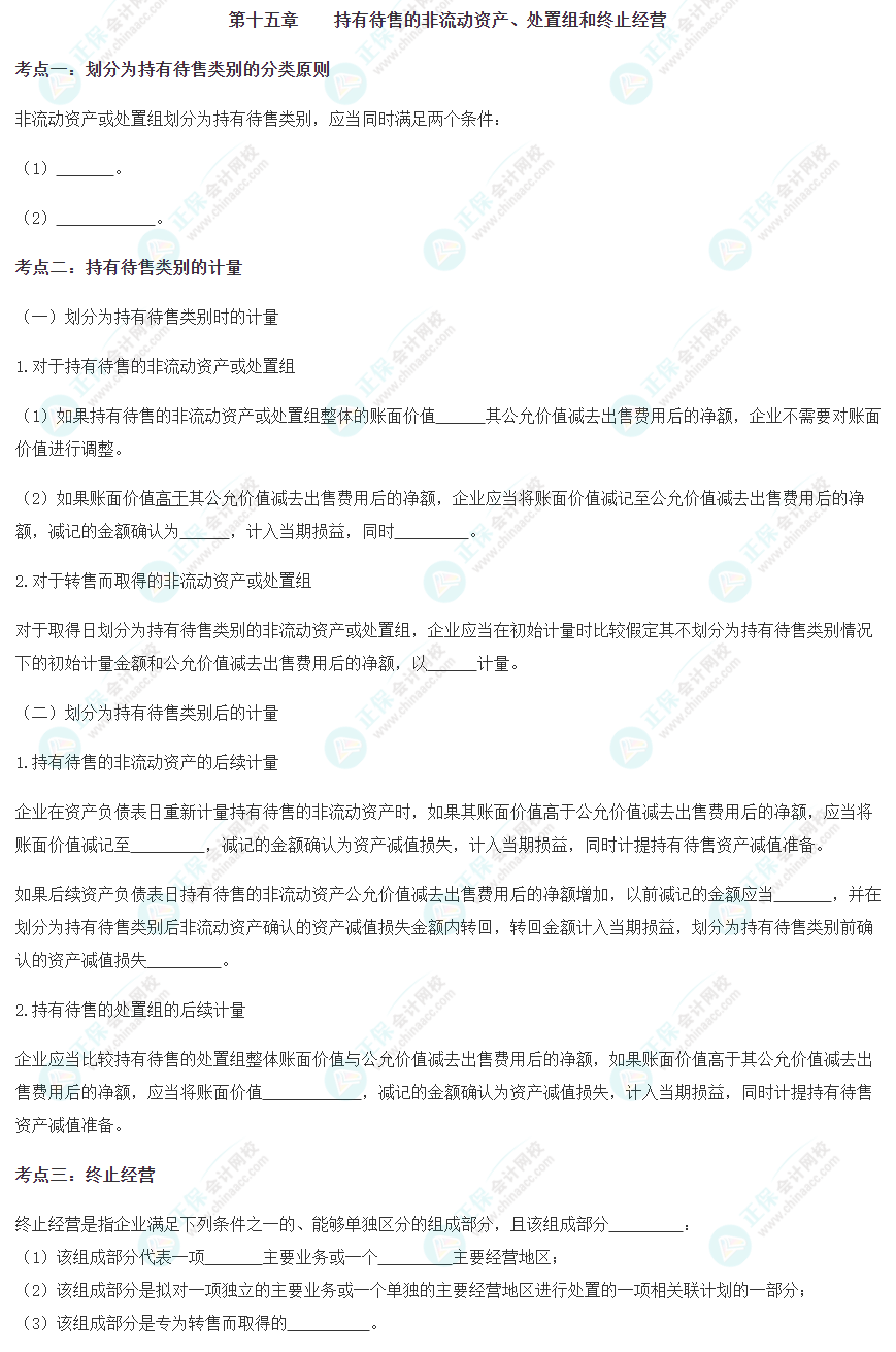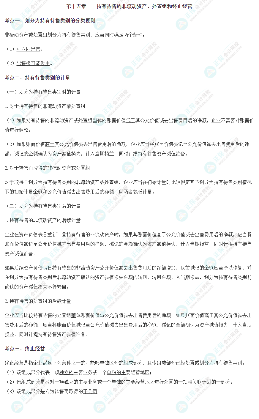 【注会审计默写本——第十五章 持有待售的非流动资产、处置组和终止经营】