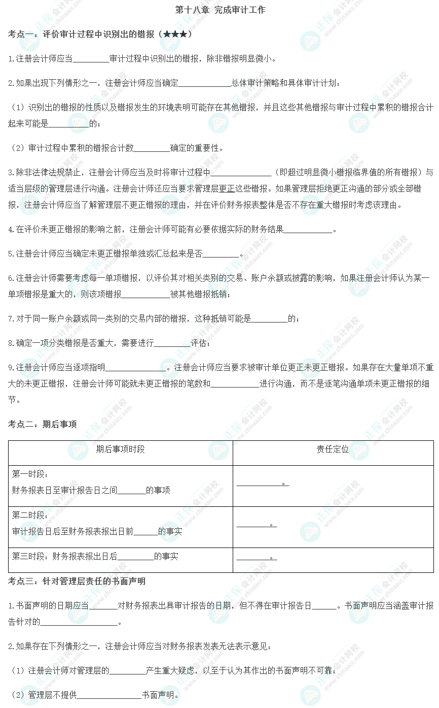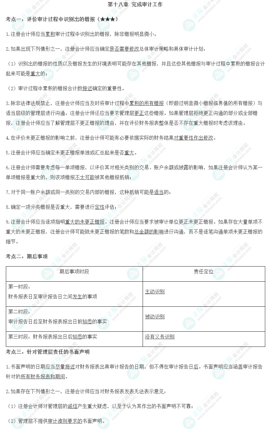 【注会审计默写本——第十八章 完成审计工作】