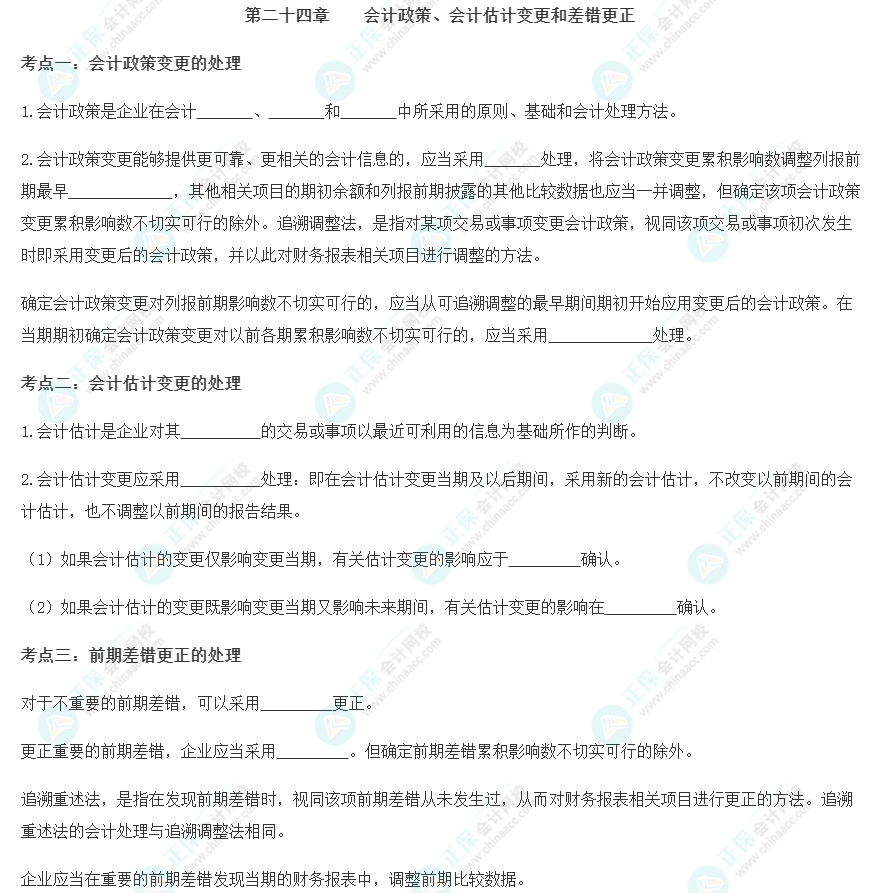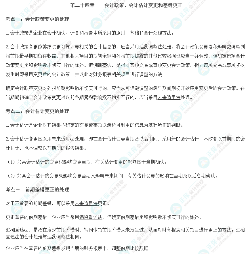 【注会审计默写本——第二十四章 会计政策、会计估计变更和差错更正】