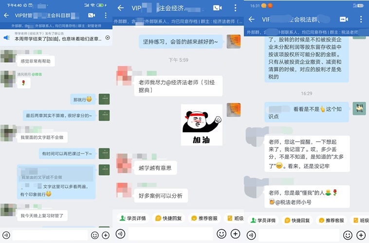 距离2023年注册会计师考试时间越来越近,你复习进度到哪一步了呢?VIP签约特训班的小伙伴们都在热火朝天的备考呢,你再不抓紧时间就来不及啦!学习累了吗?来看看VIP班学员学习真实感受吧。~
