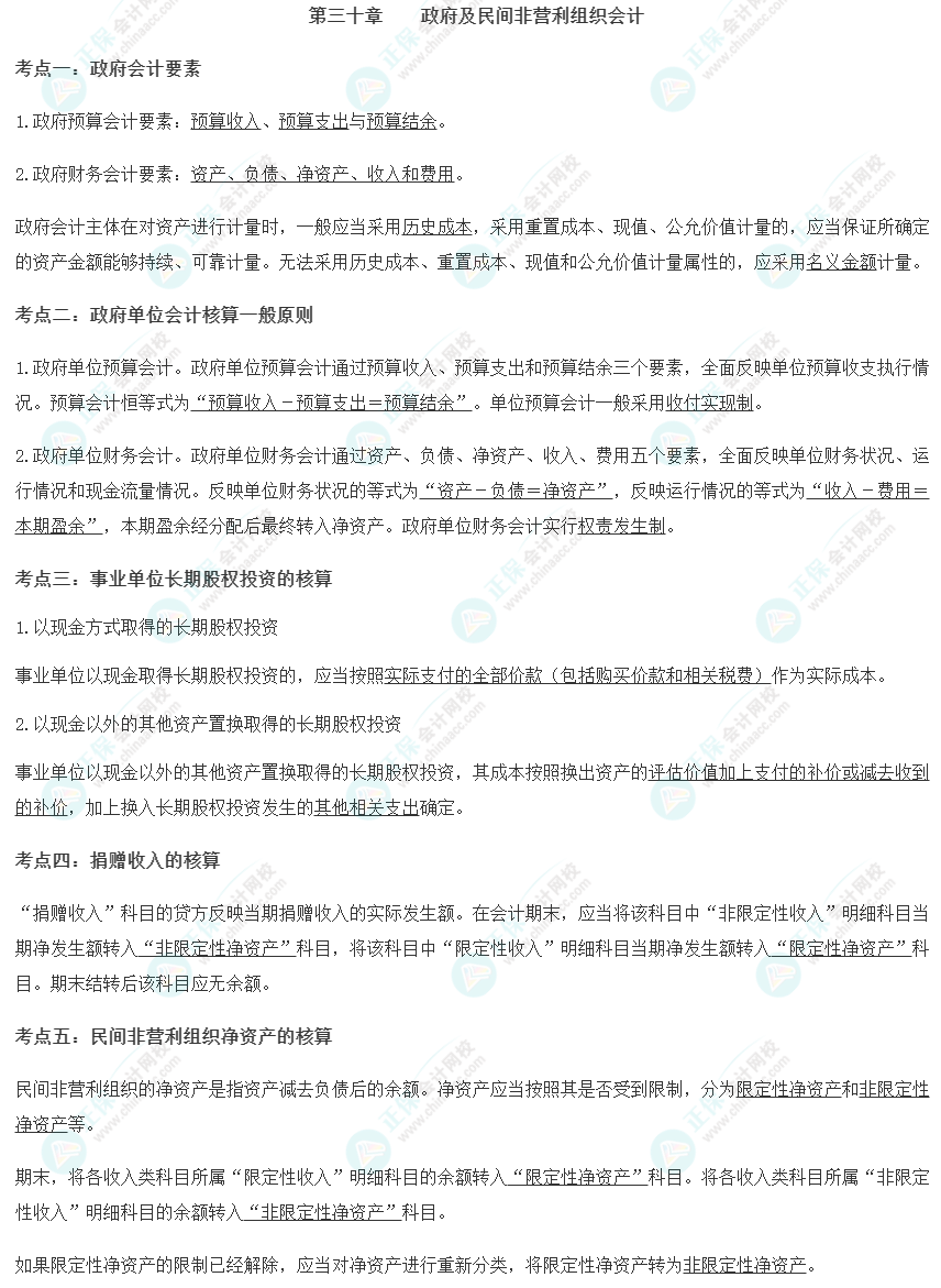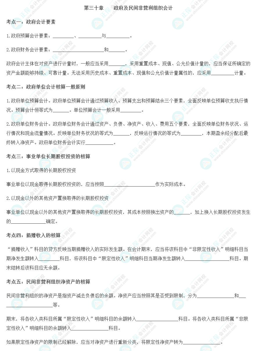 【注会审计默写本——第三十章 政府及民间非营利组织会计】