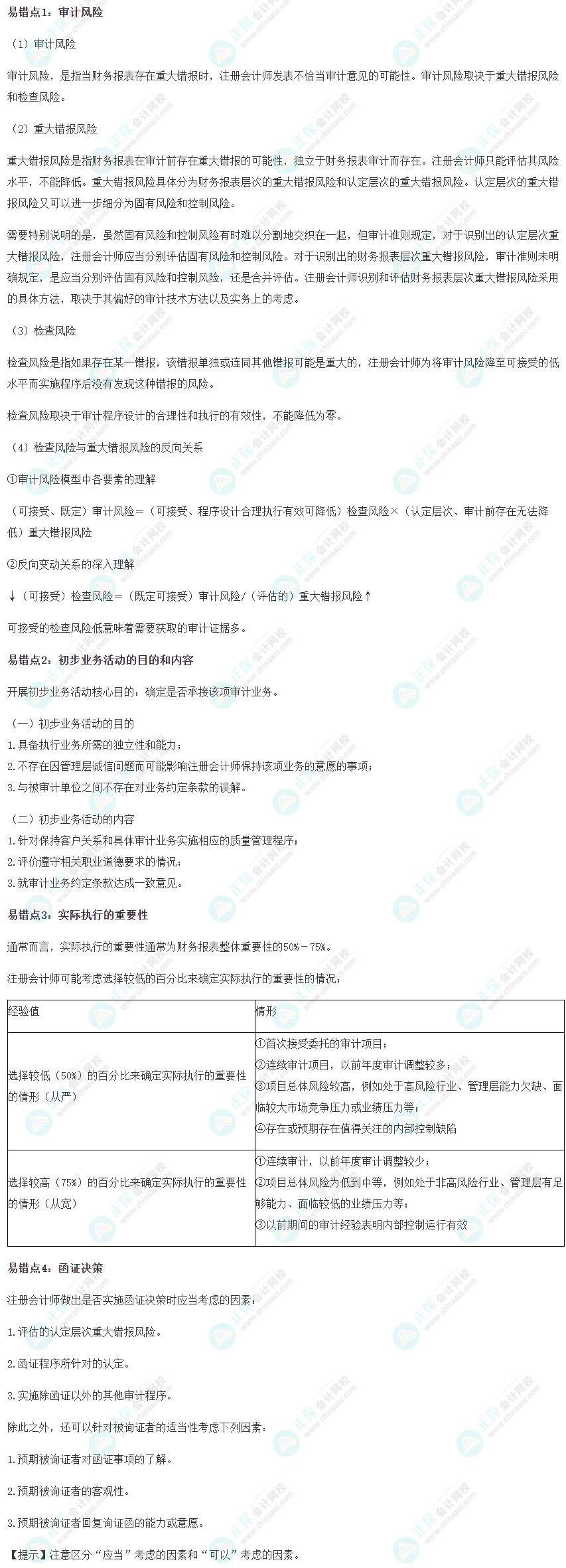 @2023年注会考生:2023年注册会计师备考已经进入冲刺阶段,为了帮助考生们更好的冲刺2023年注会考试,正保会计网校为大家准备了注会《审计》易错点,希望对同学们有所帮助!