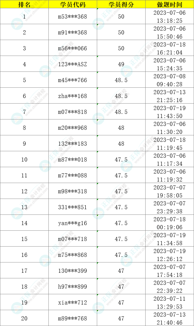 2023年注册会计师万人模考第二轮模考已结束,自由模考7月28日开始,火速预约!二模获奖名单现已公布!恭喜以下学员,获得正保会计网校缤纷奖品!快来看看幸运儿里有没有你!
