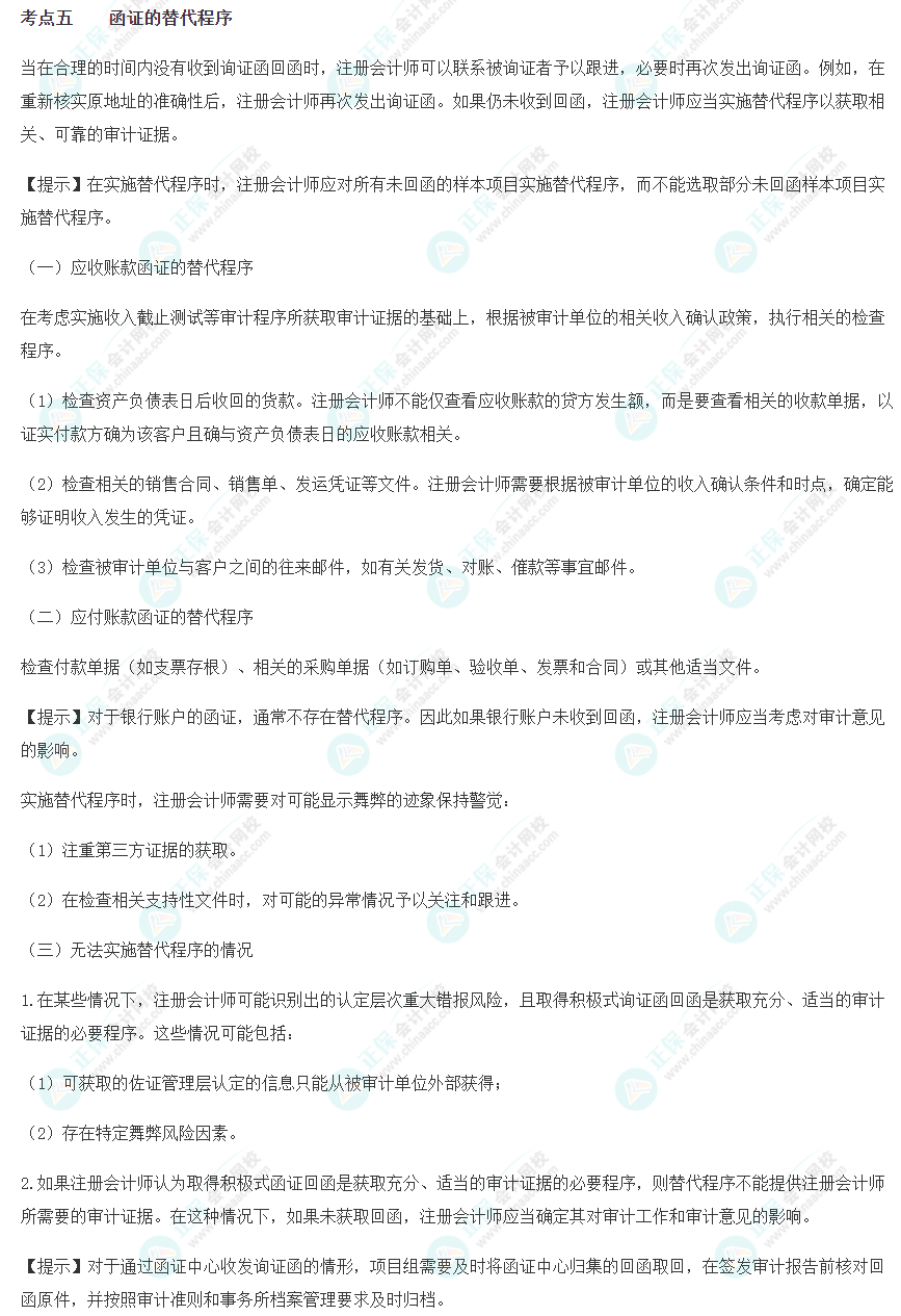 2023注会《综合阶段》必背考点五:函证的替代程序