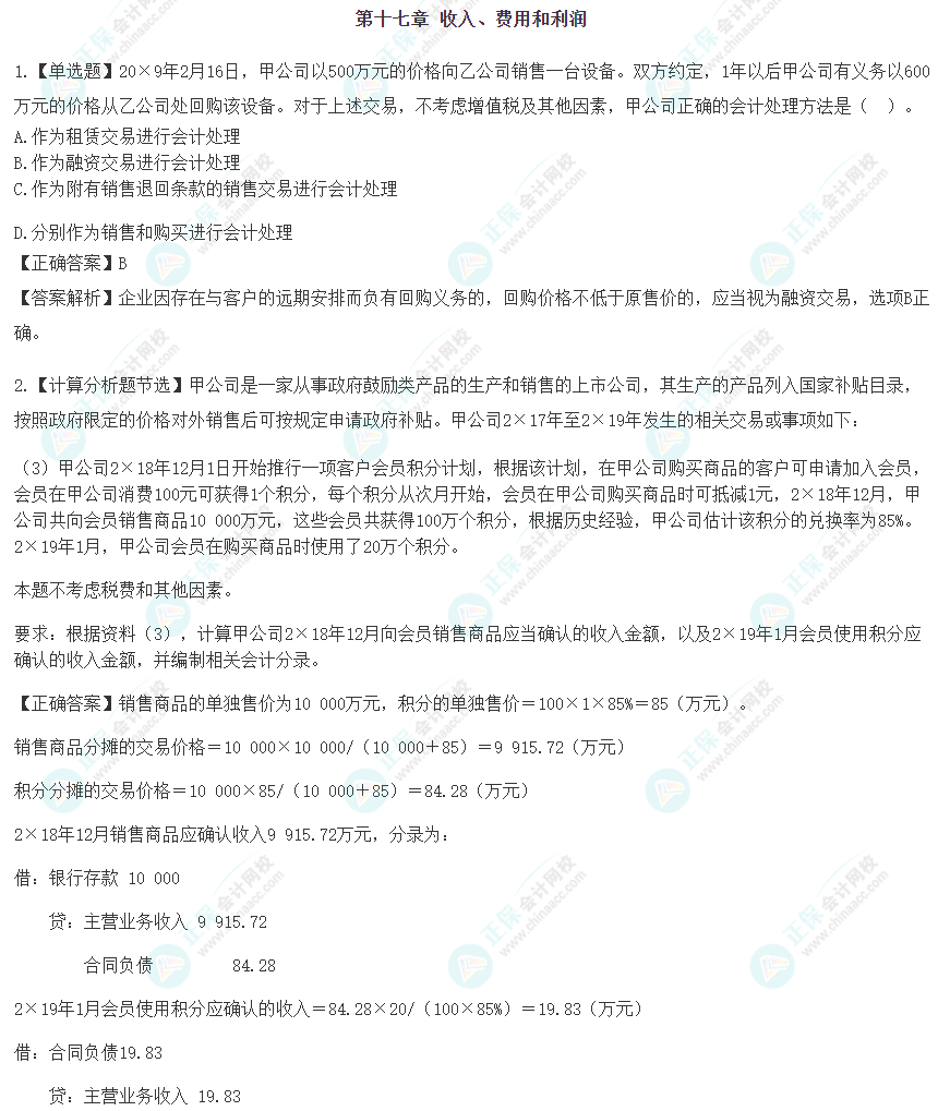 注会《会计》考前冲刺易混易错题第十七章:收入、费用和利润