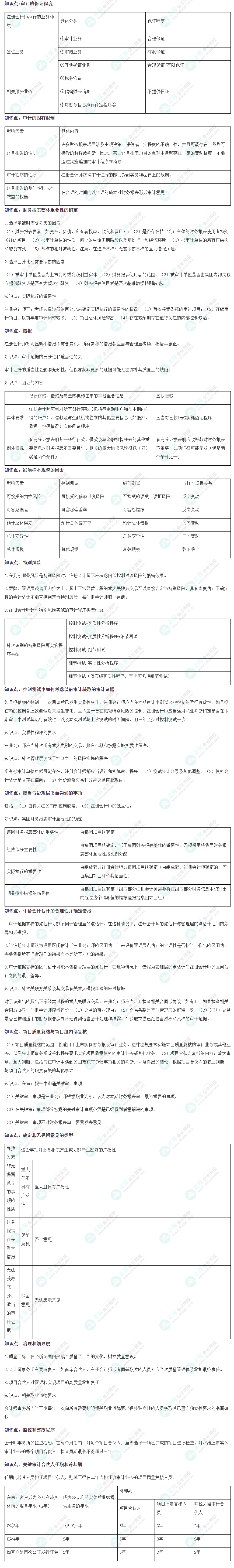 注册会计师《审计》考前3页纸!
