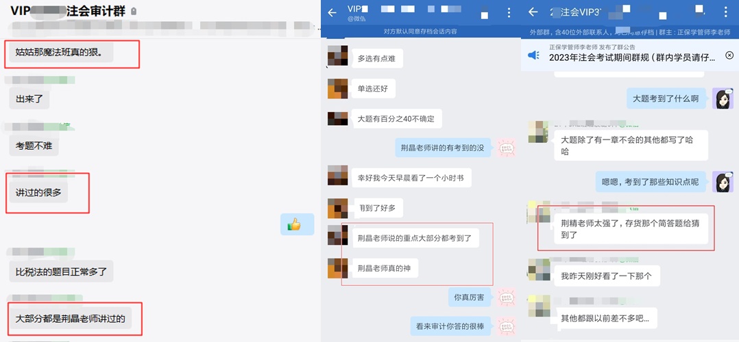 2023年注册会计师《审计》科目已经考完了!走出考场的你,此刻是否感慨万千?这段时间的努力,能否有个圆满的答卷?让我们看看vip签约特训班的同学们都怎么说...