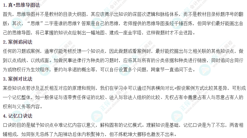 以下是张稳老师在经济法课程中“建立提取线索”的一些方法,可供大家参考: