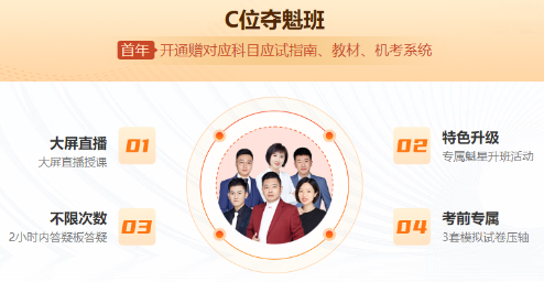 C位夺魁班是大屏直播,八大高效课程体系,分阶段教学,李忠魁、豆阿凯等6位超能师资助力你的夺魁之路,还有学管师督学守护!让你备考之路更轻松!现专题先行已开课!早买早学习!查看更多课程详情介绍>