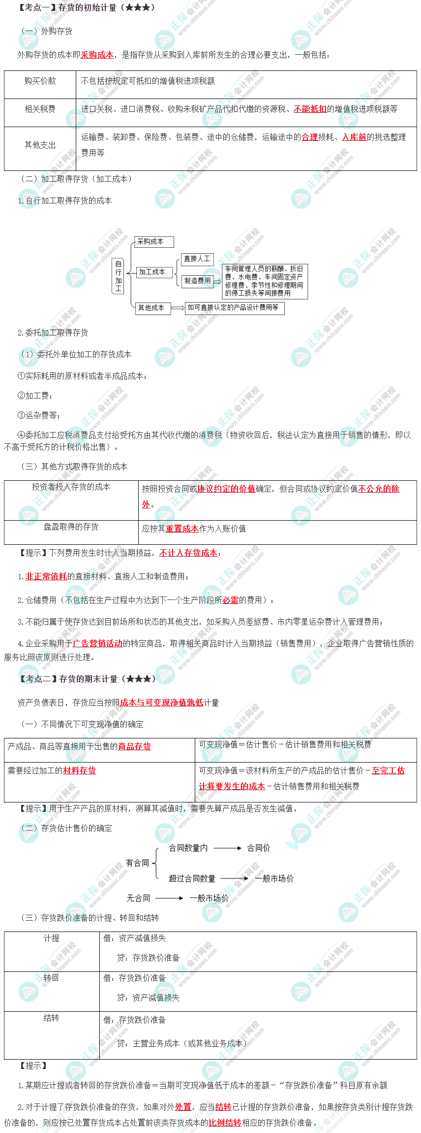预习考点 | 存货的初始计量、存货的期末计量、存货的清查盘点 |
