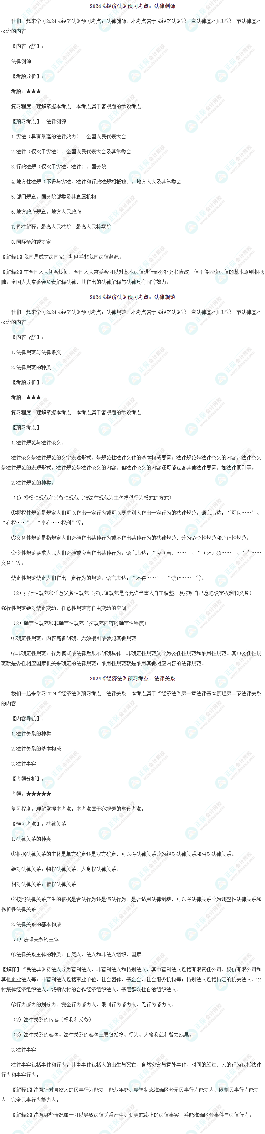2024注册会计师新考期开启,对于备考学习过程中你有什么疑问吗?哪些是需要掌握的考点呢?不要着急! 正保会计网校老师为大家整理了2024年注会经济法预习阶段考点,一起来看看吧~