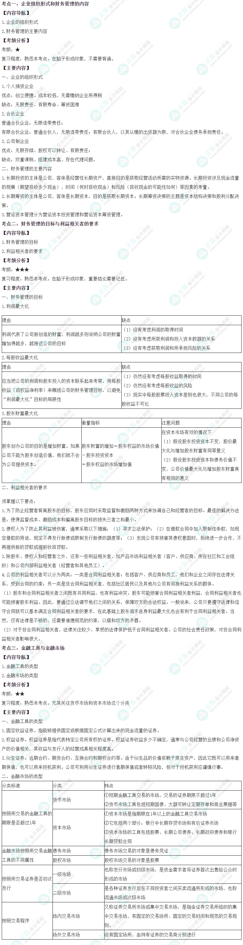 考点二 | 财务管理的目标与利益相关者的要求 | ★★★ |