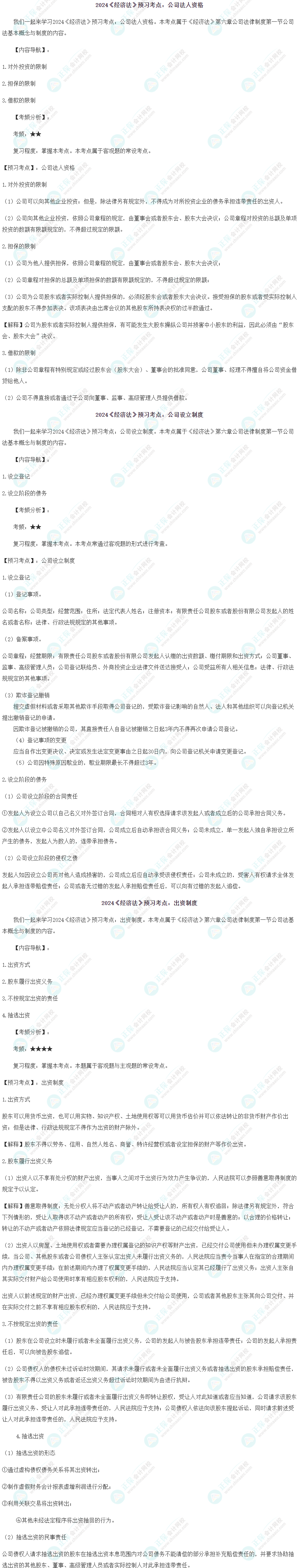 2024注册会计师新考期开启,对于备考学习过程中你有什么疑问吗?哪些是需要掌握的考点呢?不要着急! 正保会计网校老师为大家整理了2024年注会经济法预习阶段考点,一起来看看吧~