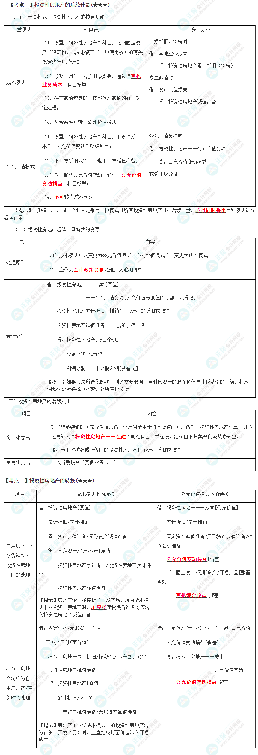 预习考点 | 投资性房地产的后续计量、投资性房地产的转换 |