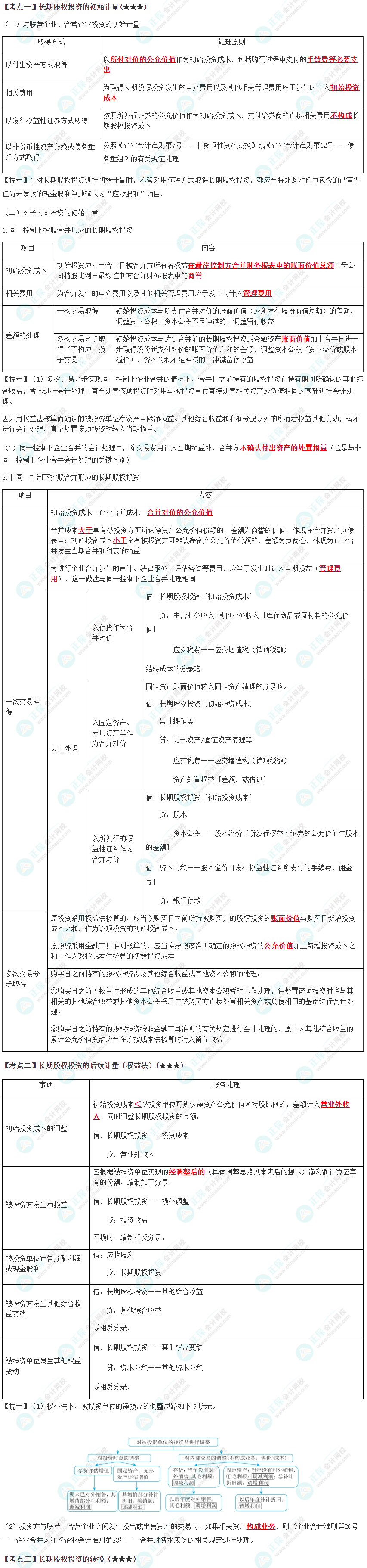 预习考点 | 长期股权投资的初始计量、后续计量(权益法)、长期股权投资的转换、长期股权投资的处置、合营安排 |