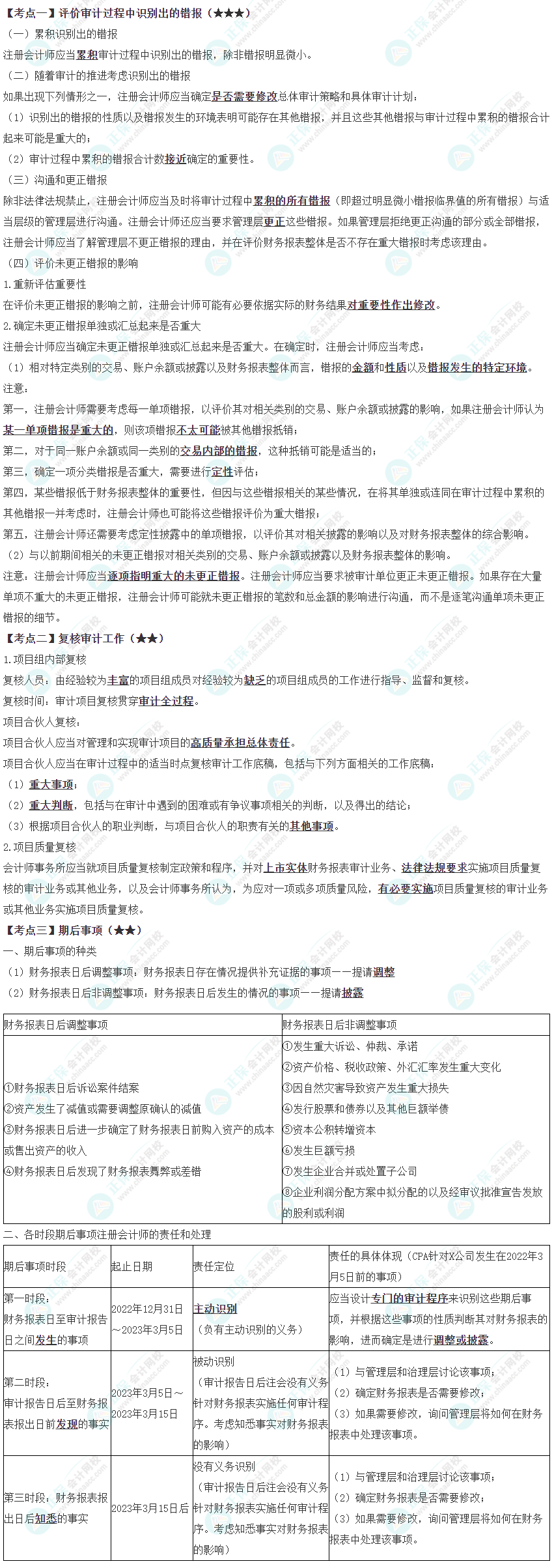 预习考点 | 评价审计过程中识别出的错报、复核审计工作、期后事项、书面声明 |
