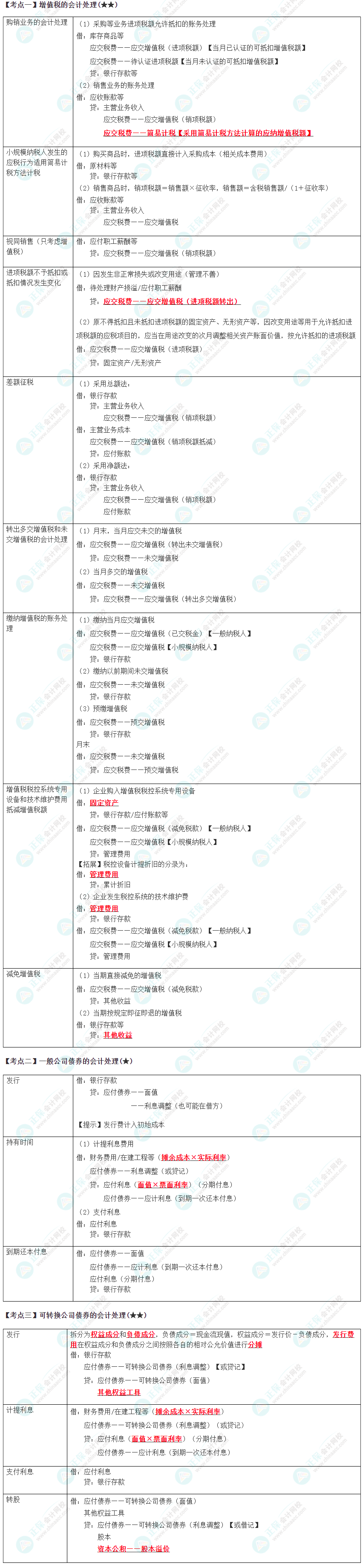 预习考点 | 增值税的会计处理、一般公司债券的会计处理、可转换公司债券的会计处理 |