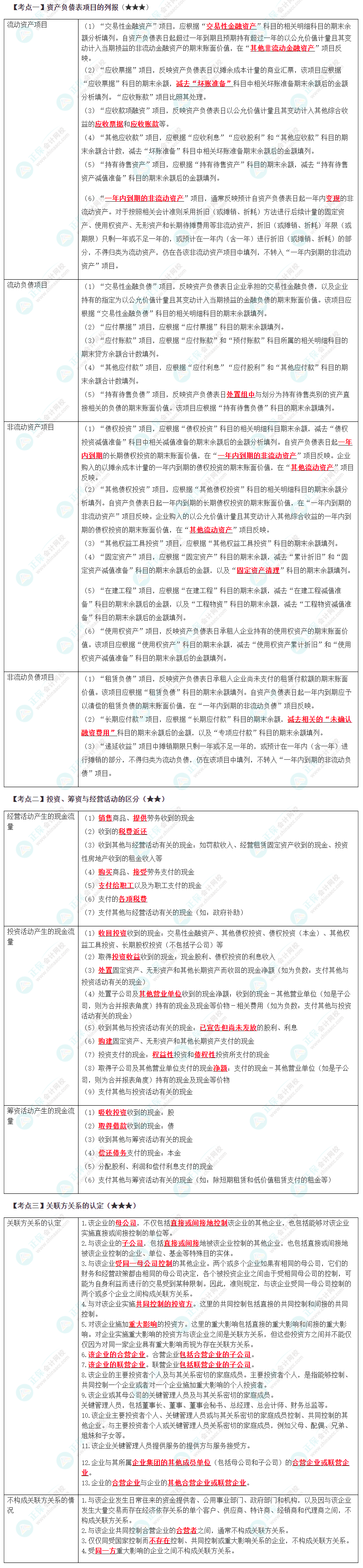 预习考点 | 资产负债表项目的列报;投资、筹资与经营活动的区分;关联方关系的认定 |