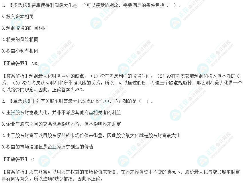 2024年注会《财管》预习阶段易混易错题汇总