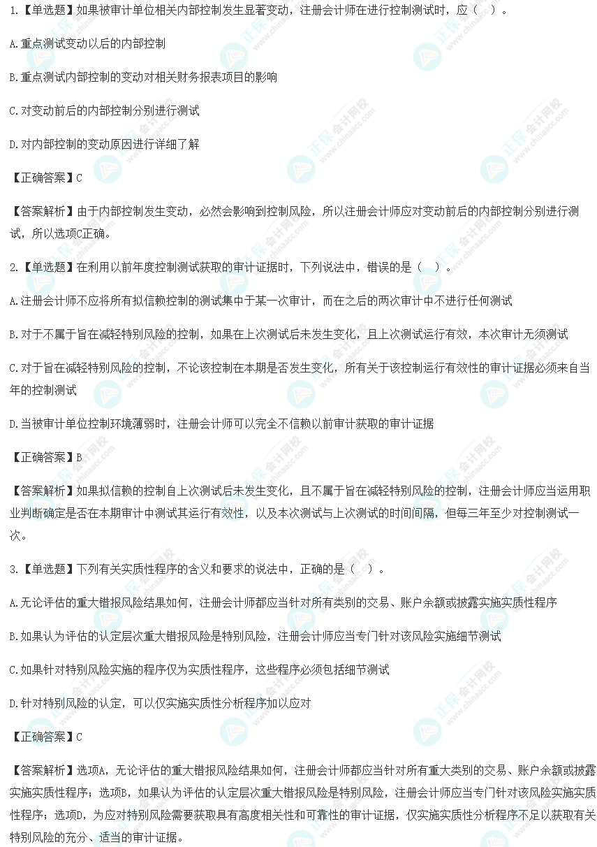 2024年注会备考火热进行中,你的备考之路是否已开启?网校老师为大家整理了注会考试《审计》科目的易混易错题,预习阶段做一做,对于打好基础和了解考试很有帮助哟~快来看看吧!